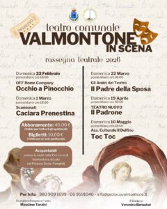 Valmontone in Scena 2026 porta al Teatro Comunale, da febbraio a maggio, il talento delle 5 compagnie teatrali locali.