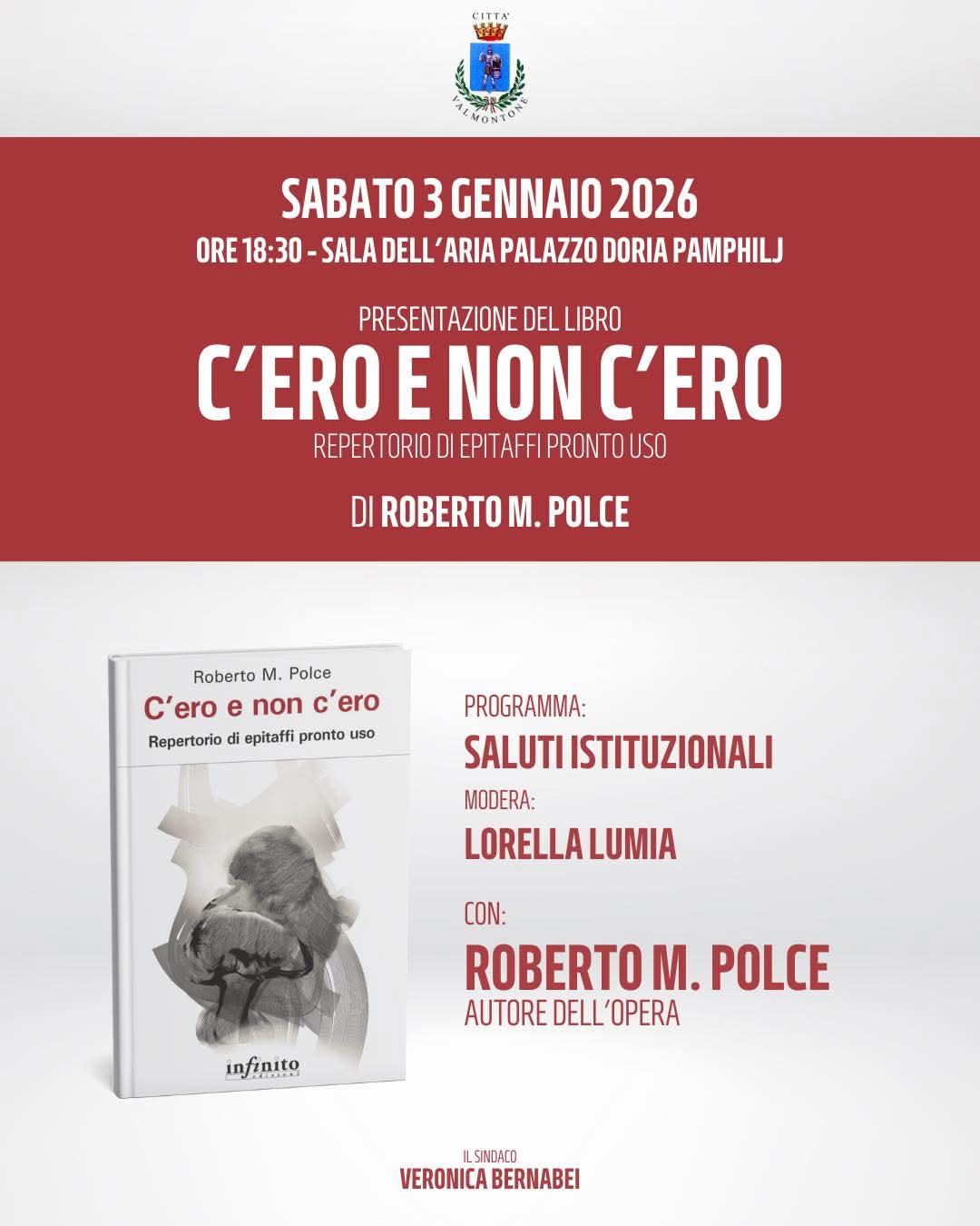 A Valmontone, nel primo sabato del 2026, il prossimo 3 gennaio, alle ore 18:30, a Palazzo Doria Pamphilj, la presentazione del libro “C’Ero e non C’Ero – Repertorio di epitaffi pronto uso”.