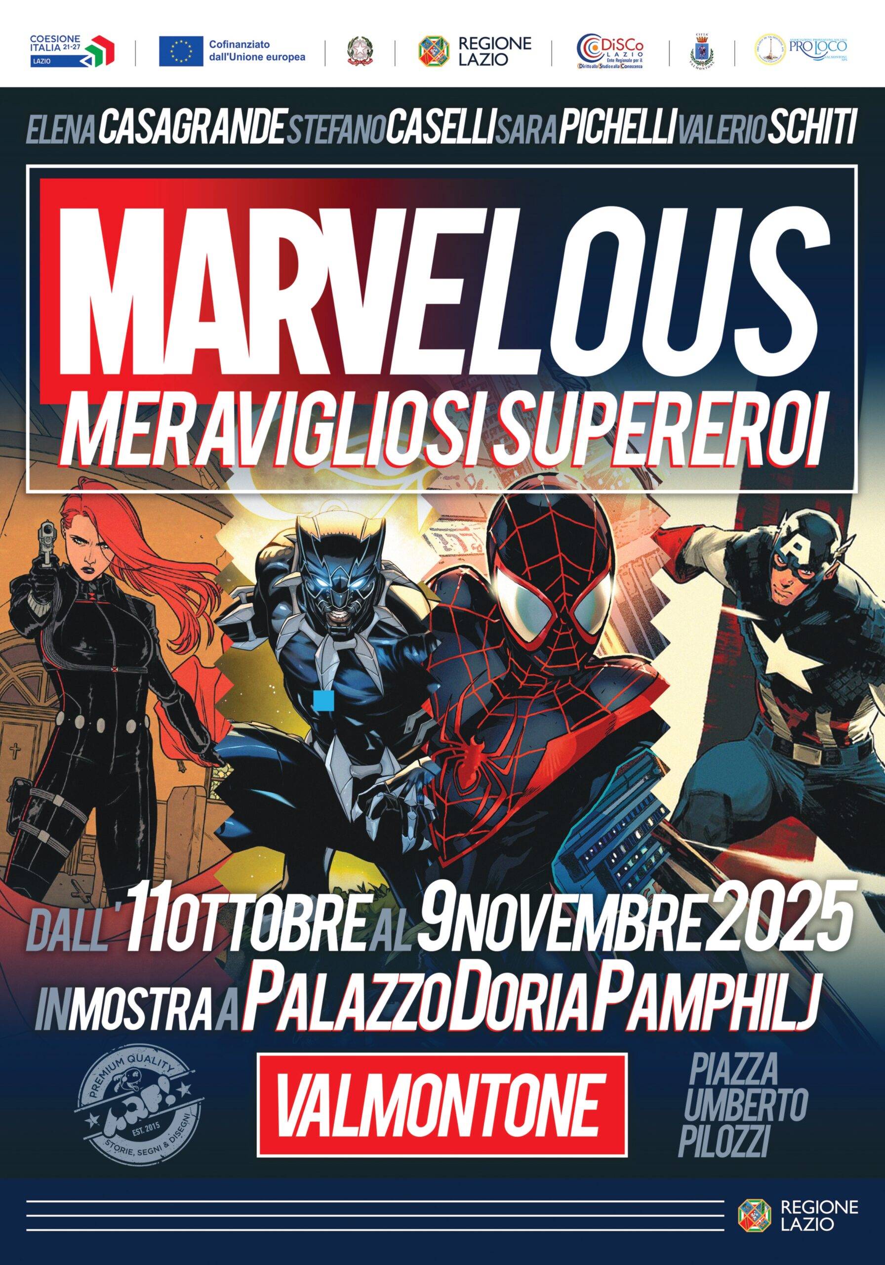 A Valmontone, nel periodo compreso tra sabato 11 ottobre 2025 e il prossimo 9 novembre, il suggestivo Palazzo Doria Pamphilj ospiterà la mostra “Marvelous” (meravigliosi super eroi).