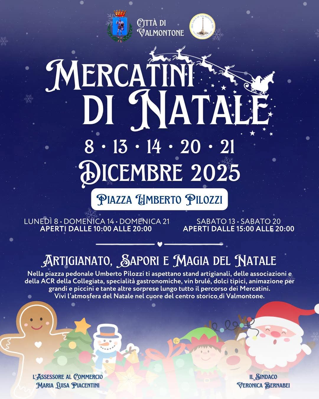 A Valmontone, lunedì 8 dicembre 2025, in Piazza “U. Pilozzi”, una giornata ricca di appuntamenti con l’inaugurazione dei Mercatini di Natale.