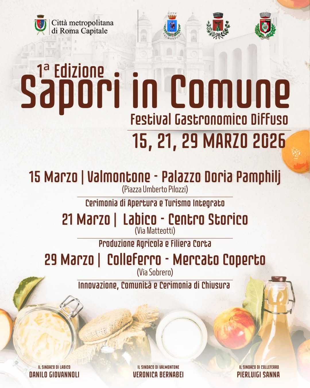 Nasce “Sapori in Comune”, il Festival Gastronomico Diffuso che nei giorni 15, 21 e 29 marzo 2026 coinvolgerà Valmontone, Labico e Colleferro in un percorso itinerante dedicato al cibo, alla produzione locale e al turismo.