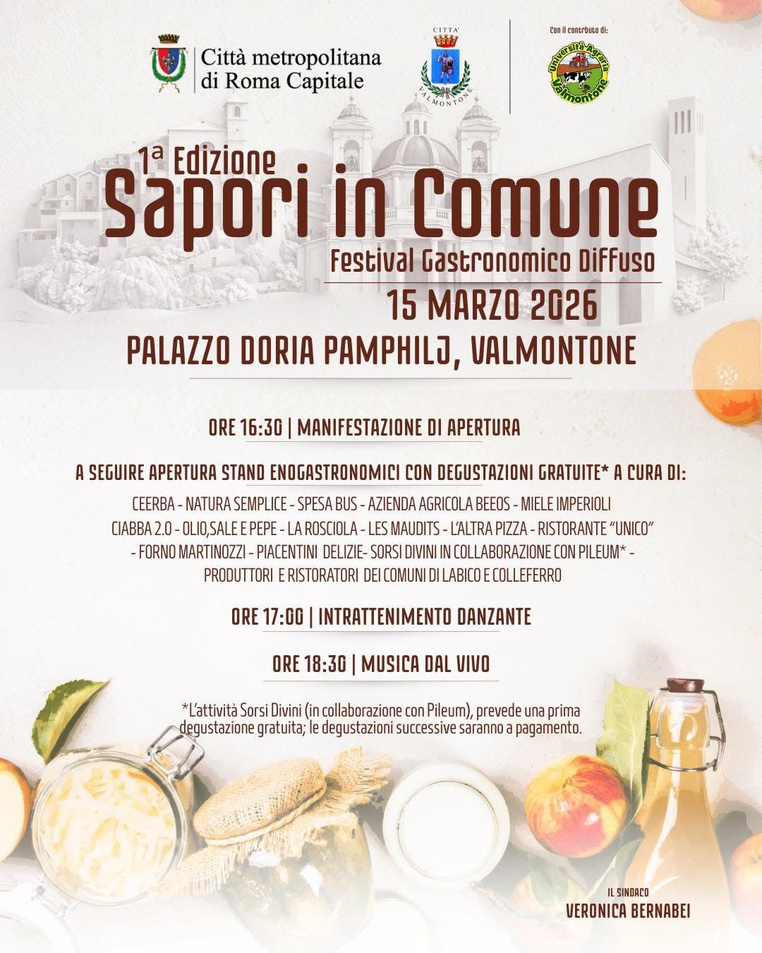«Sapori in Comune è il risultato di un lavoro sinergico, nato con l’obiettivo di valorizzare le produzioni locali e rafforzare la collaborazione tra i territori di Labico, Valmontone e Colleferro» – dichiara il Sindaco Veronica Bernabei – «Ringrazio per il lavoro svolto gli uffici del Comune e le amministratrici che hanno seguito da vicino l’organizzazione dell’iniziativa: l’Assessore al Commercio e alle Attività Produttive Maria Luisa Piacentini, la Consigliera comunale delegata al Turismo Elisa De Stefano e la Consigliera comunale con delega all’Agricoltura Giulia Carosi. Un ringraziamento va anche ai produttori, ai ristoratori e a tutte le realtà che contribuiranno a rendere questo appuntamento un momento di valorizzazione del territorio».