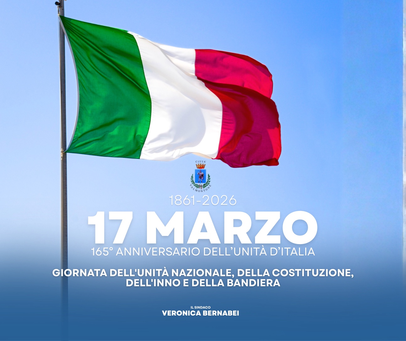 «Il 17 marzo ci invita a riflettere su ciò che tiene insieme il nostro Paese: la Costituzione, i diritti e i doveri che ne derivano, il valore dei simboli che rappresentano l’unità nazionale» dichiara il Sindaco Veronica Bernabei. «Un richiamo al senso civico e alla coesione nazionale, valori che si consolidano nel rispetto delle regole dello Stato e nella responsabilità verso la comunità.»