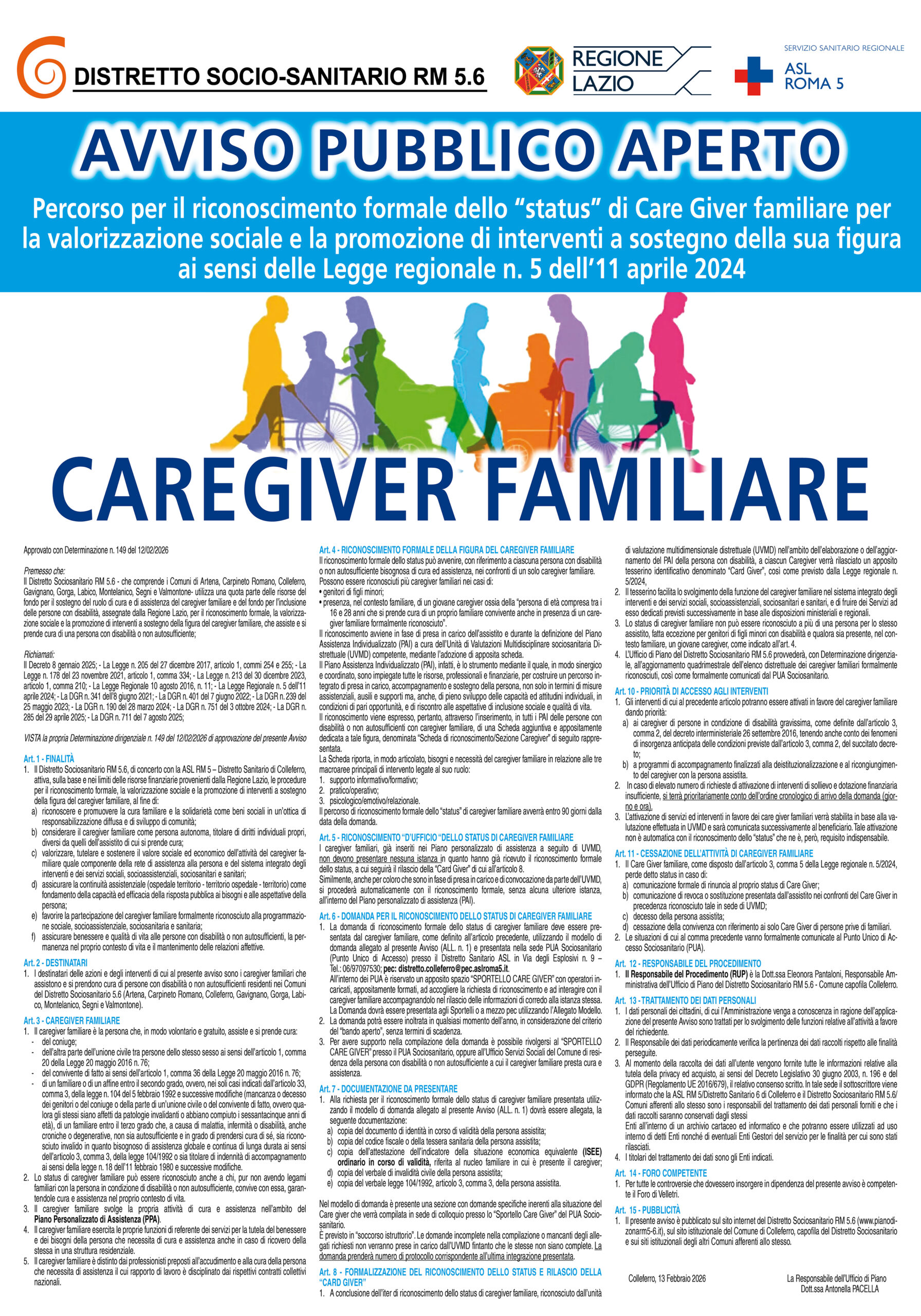 La richiesta di riconoscimento di Care Giver familiare si può presentare presso il PUA della ASL di Colleferro presso allo SPORTELLO CARE GIVER mediante modulistica in allegato o alla pec distretto.colleferro@pec.aslroma5.it
