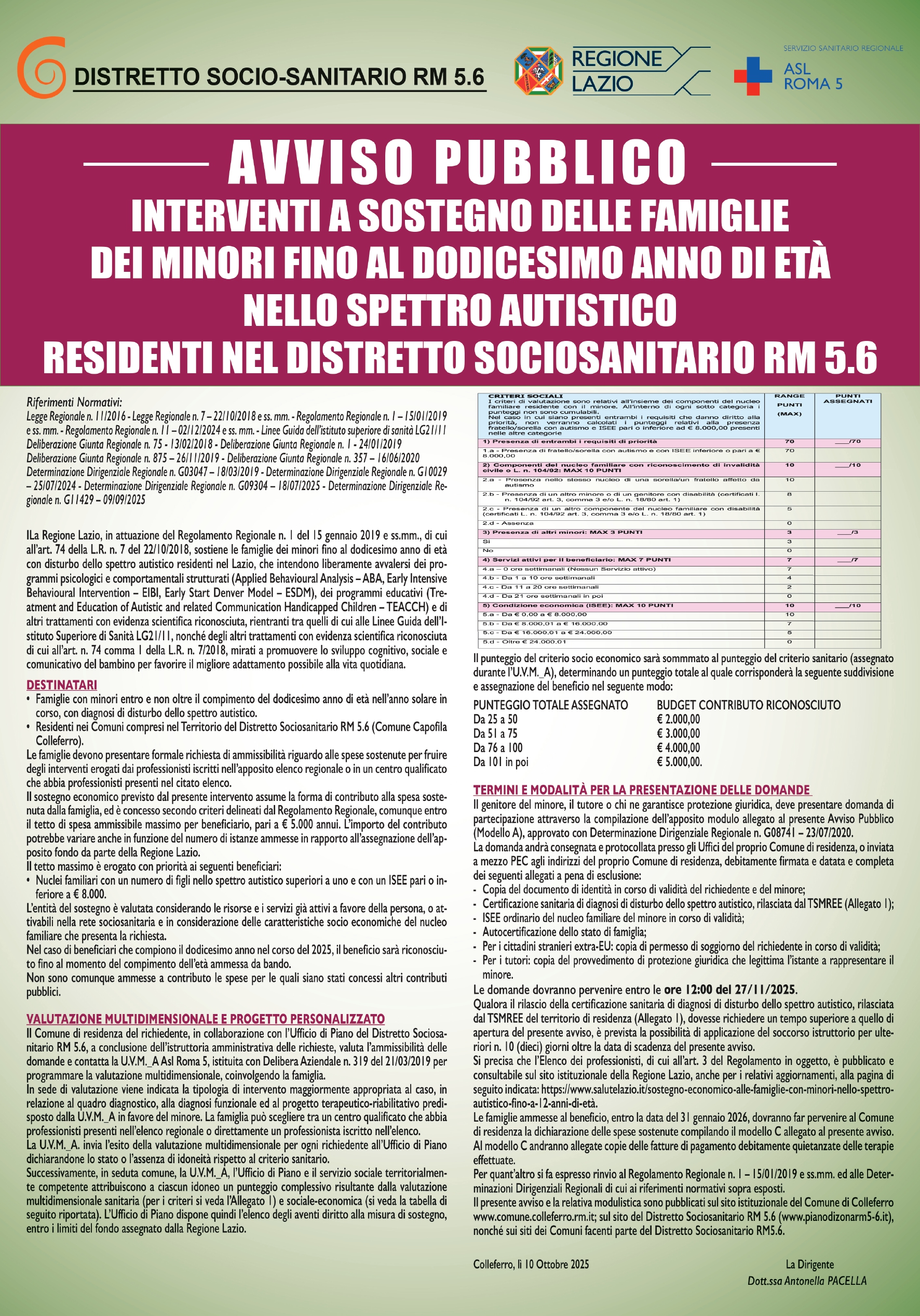 Interventi a sostegno delle famiglie dei minori fino al dodicesimo anno di età nello spettro autistico.