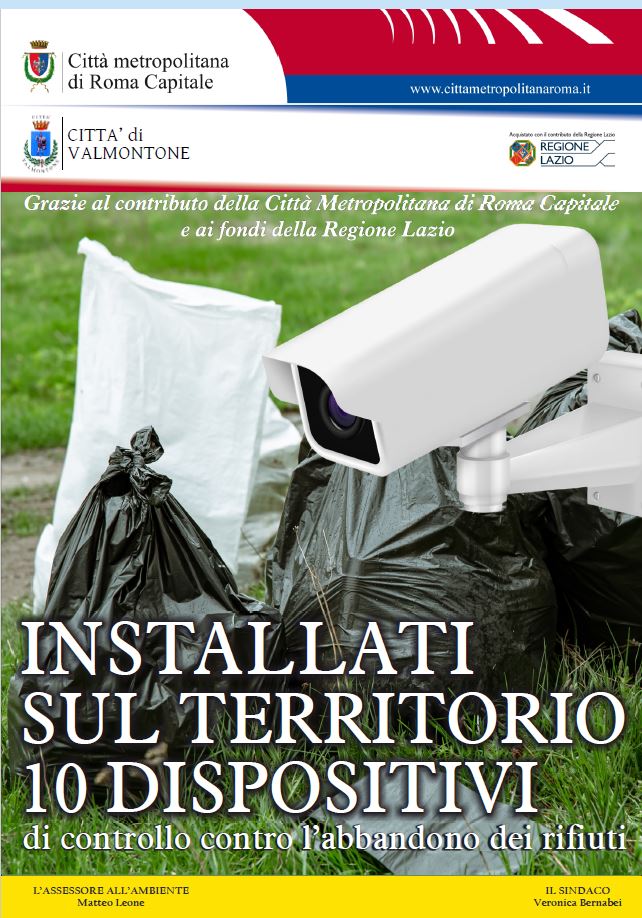 Si informa la cittadinanza di Valmontone dell’attivazione di un nuovo sistema di controllo contro l’abbandono dei rifiuti.